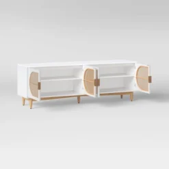 Organic Caned TV Stand For TVs Up To 65″ White – Thresholdâ˘